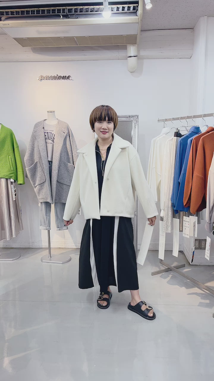 高級感あふれるビーバー調の毛並み、ウールのような温かみのある表面とジャージならではのストレッチ性を兼ね備えたイタリア製の素材で仕上げたスタンドカラージャケット。ゆったりとした抜け感のあるシルエットとヒップにかかる着丈で織りやすさも魅力です。裾に向かって程よく丸みを帯びたシルエットやコクーンスリーブもポイント。